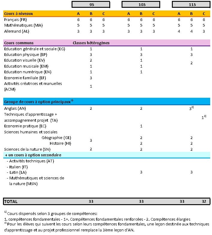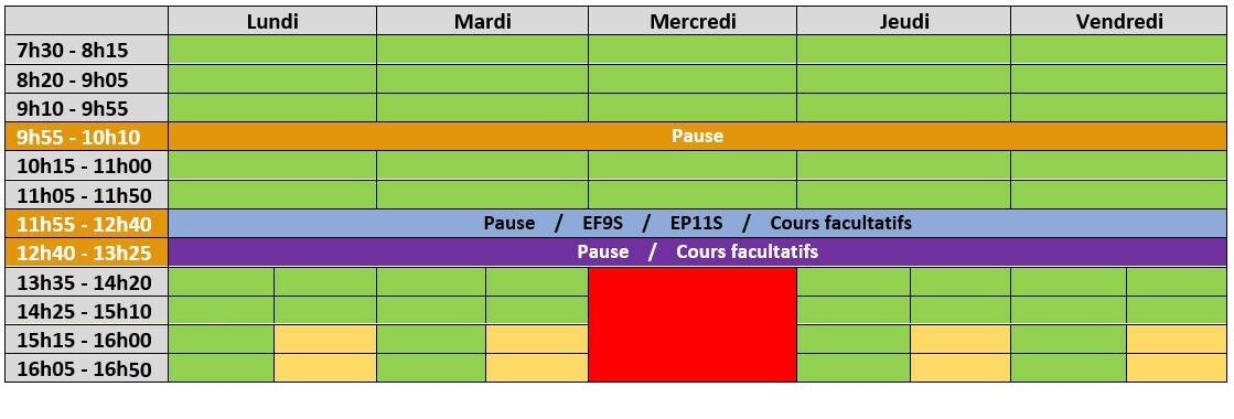 Horaire des élèves