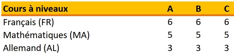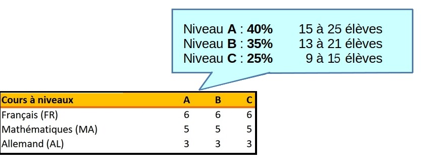 - répartition homogène des profils par niveaux de compétence y compris les élèves ayant un suivi en classe de soutien ou dans la structure allophone