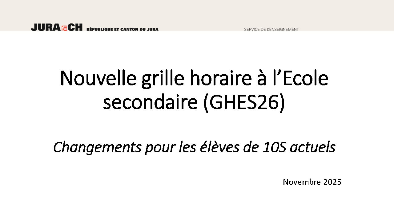 La nouvelle grille horaire de l'école secondaire sera introduite en août 2026. Les élèves 9S et 10S de l'année scolaire 2025-2026 sont donc concernés par les changements qui seront introduits.