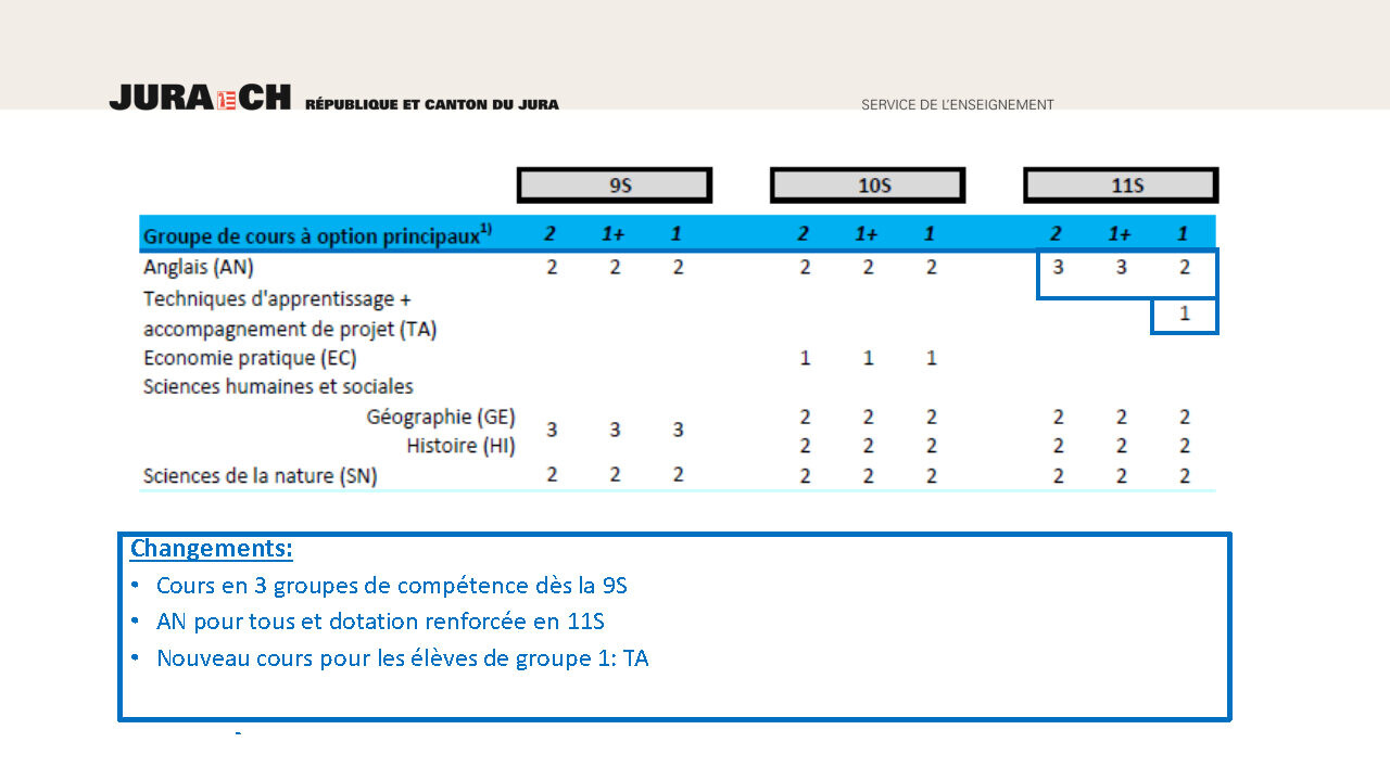 Les maîtres de classes 9S et 10S informeront leurs élèves durant les cours EG, afin de leur expliquer le nouveau système et de répondre à leurs questions.